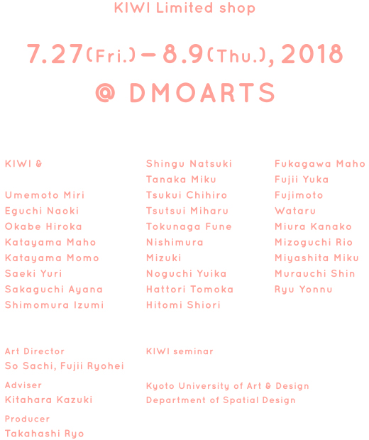 KIWI Exhibition & Limited shopJuly 27(Fri.)−Aug.9(Thu.),2018
